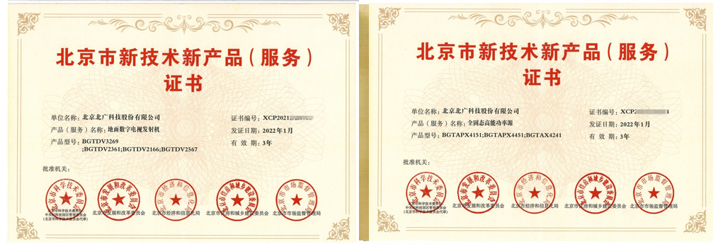北廣科技地面數字電視發射機、全固態高能功率源被認定為第十五批北京市新技術新產品