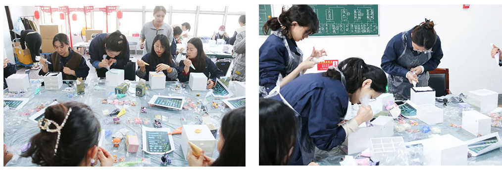 活動現場,老師從工具用法、色彩搭配、配飾選取等方面進行講授,演示了奶油膠的花紋擠法和收納盒的制作步驟。在場女職工們創作熱情高漲,發揮奇思妙想,用靈巧的雙手將不同顏色的奶油膠和飾品搭配在一起,創造出一件件別具一格的奶油膠收納盒作品,大家在感受美、欣賞美、創造美的過程中歡慶婦女節。