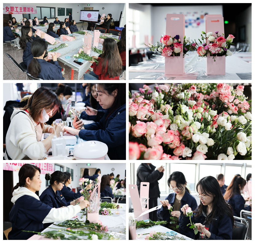 活動在職工之家溫情啟幕。專業花藝師現場講授插花技藝,女職工們素手拈花修枝理葉,將各種花材巧妙搭配,百余束錯落有致的插花作品漸次綻放。花香與笑語交織,匯成春日里最動人的風景。